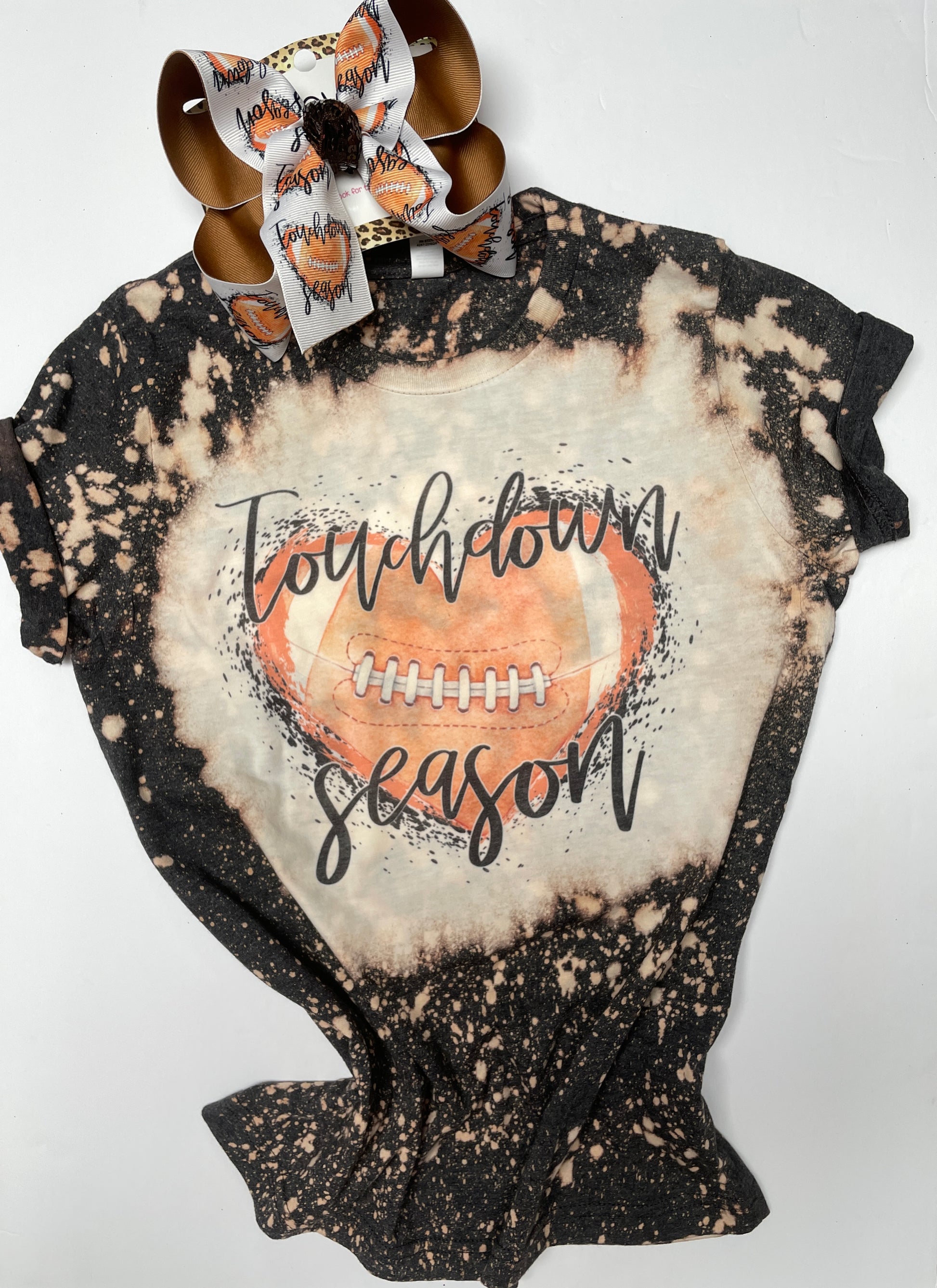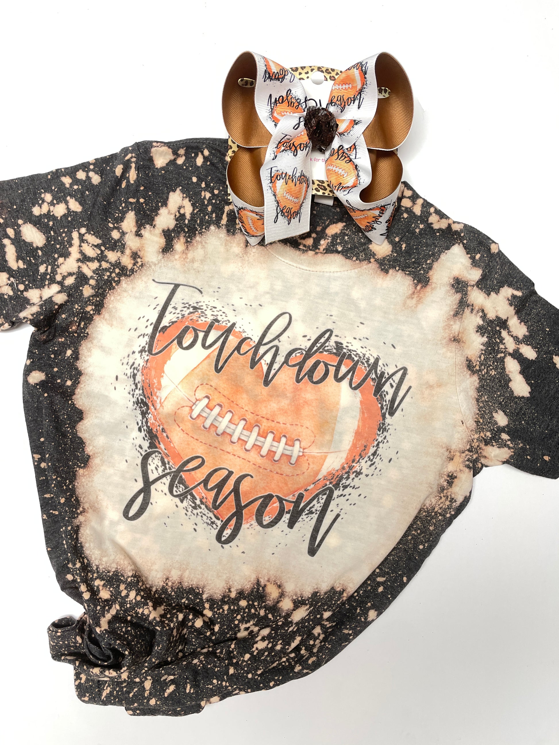 Touchdown Season ~ Football Bleached Tee & Matching OOAK Hairbow design {Bow & Tee Combo} Preorder for a Limited Time Only