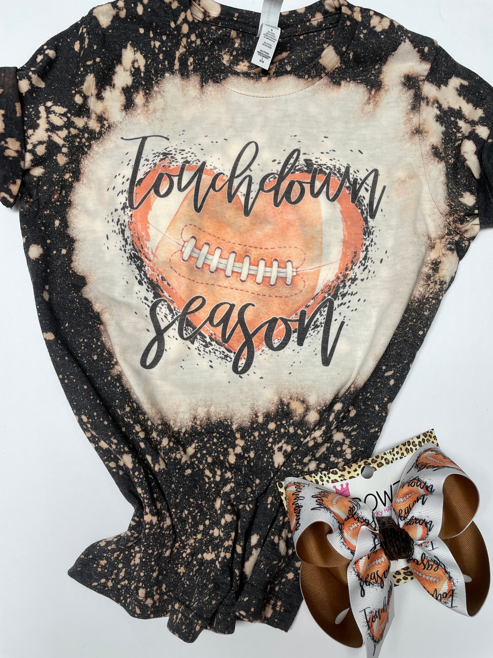 - Touchdown Season Heart Shaped Football Vintage Design on a Beautiful Bleached tee shirt