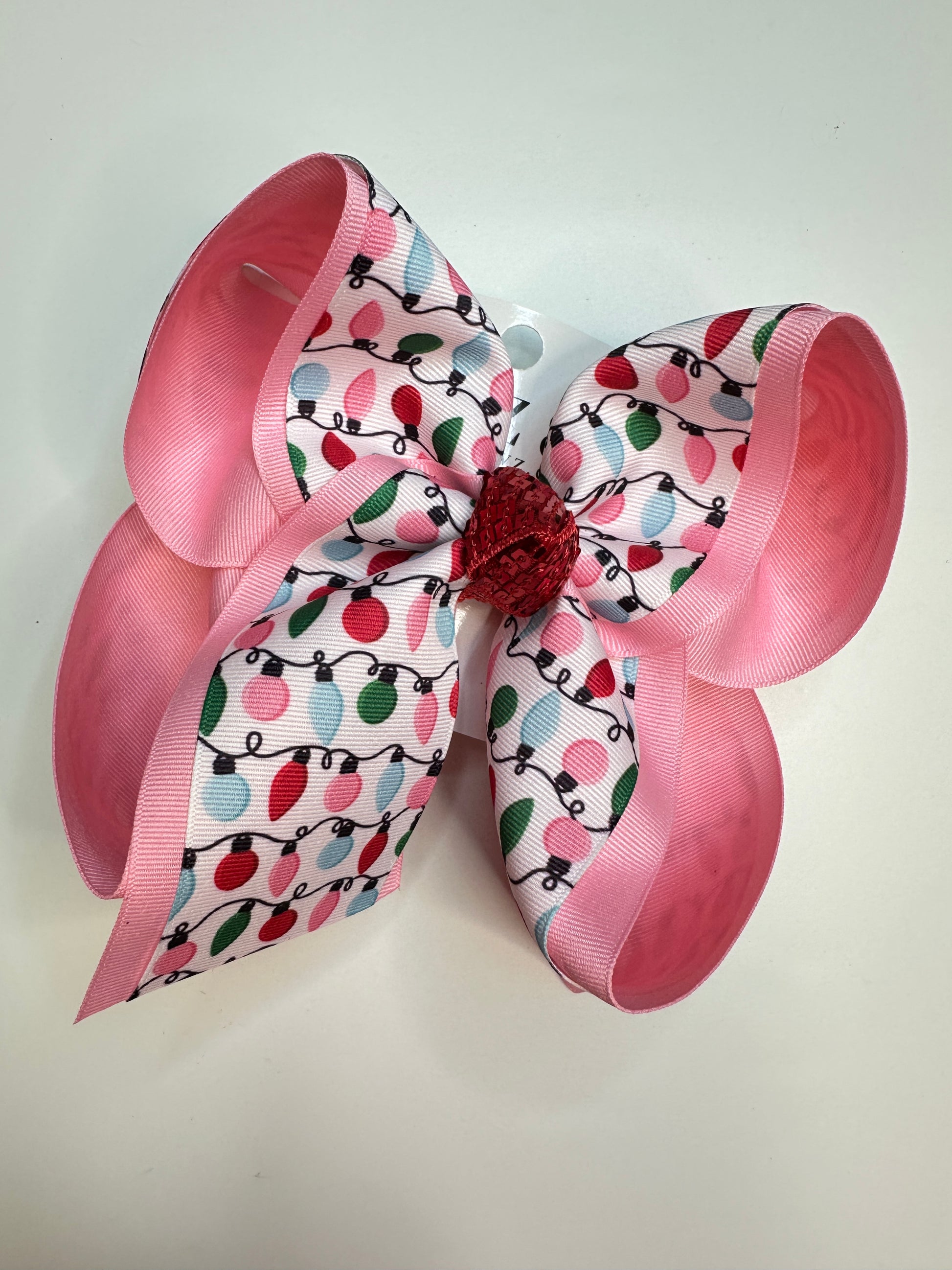Christmas Lights Pink & Red Fun Hairbow for your Girls Southern bow