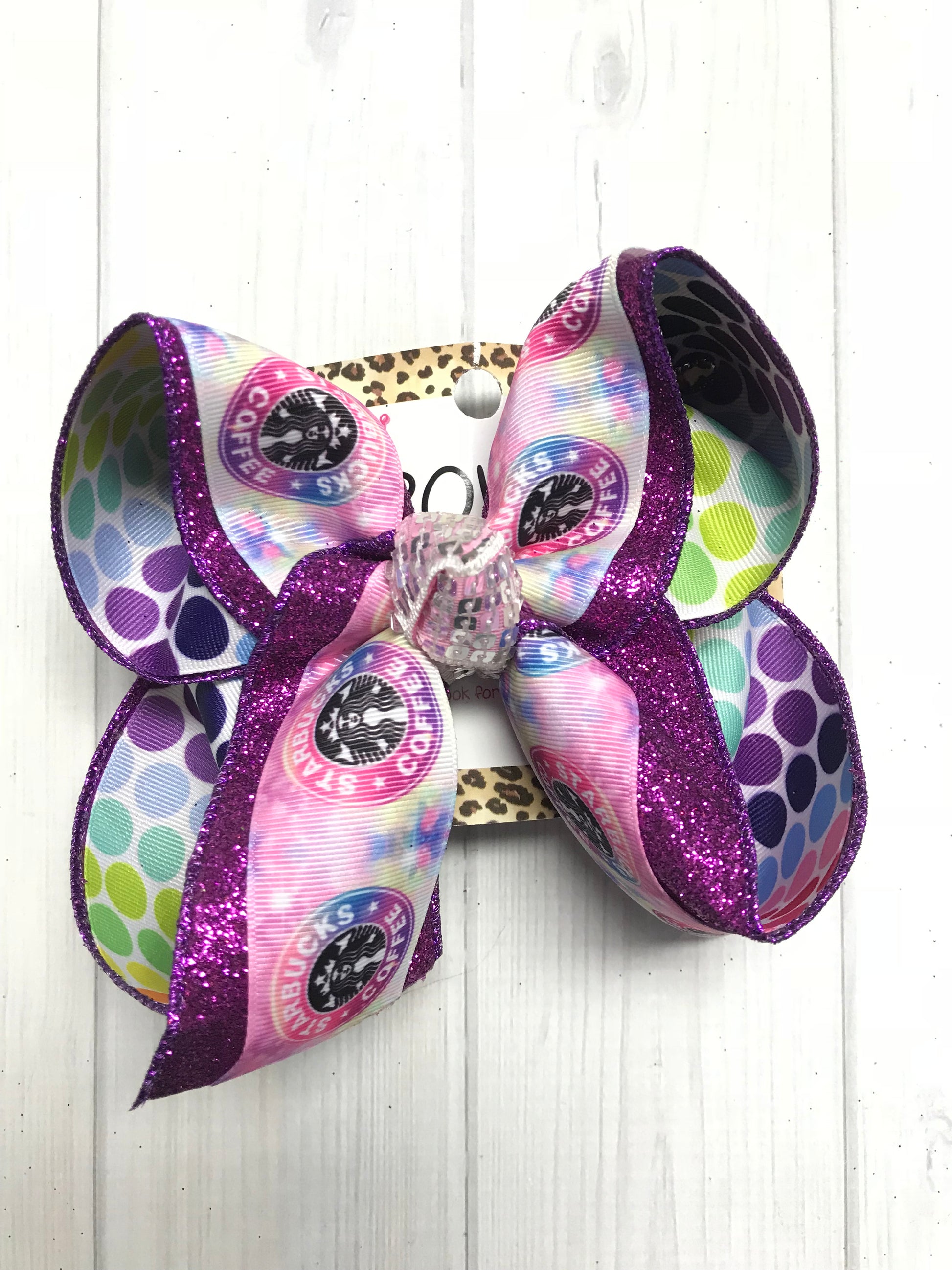 - Starbucks Galexy Fun print layered on festive fuchsia glitter on rainbow dots