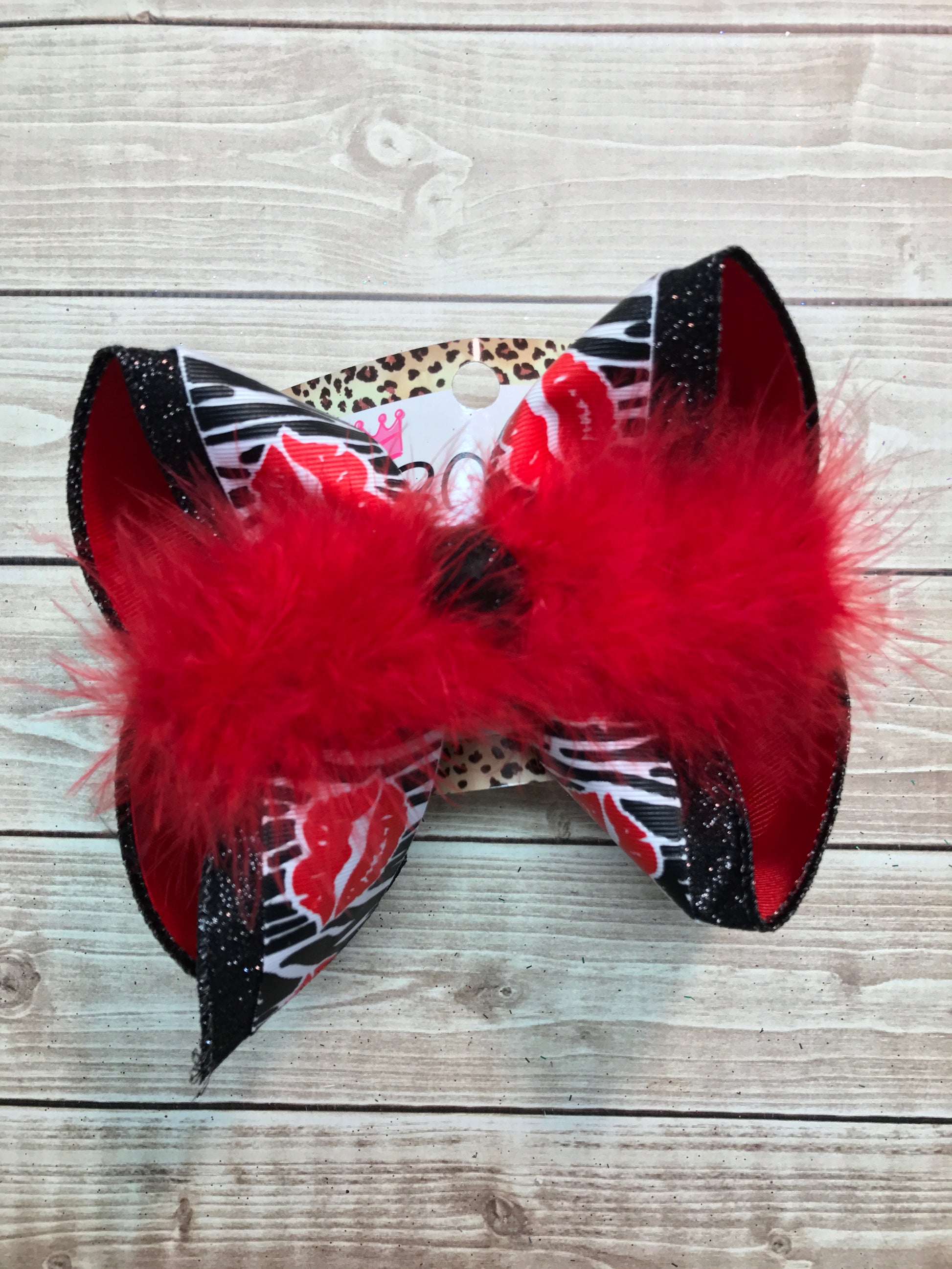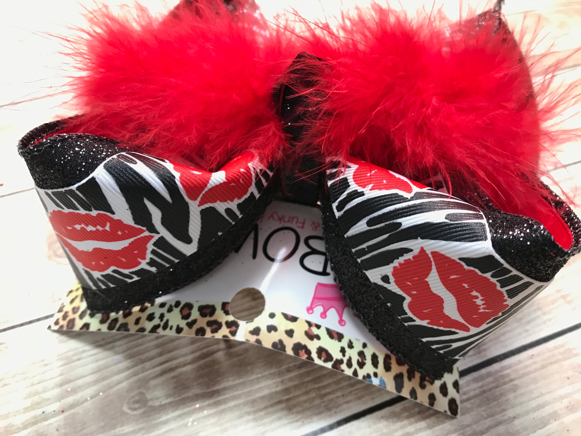Valentines Black + White Zebra Stripes + Red Lips | Valentines Day Fun hair bow