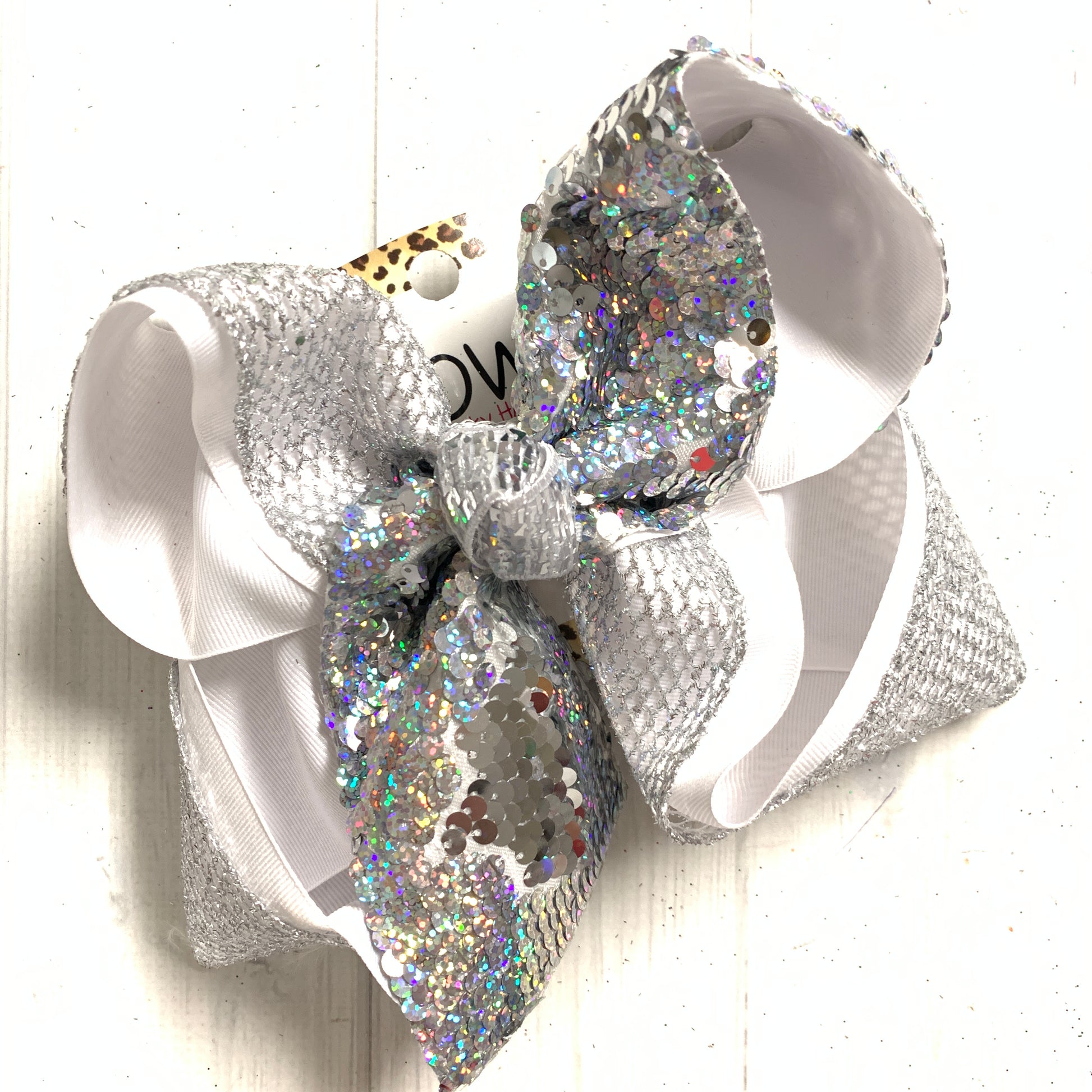 Silver Flip Sequin & Silver Glitter fishnet Fun Bow | SPARKLE & SHINE | iBOWZ Fun & Funky Hairbows
