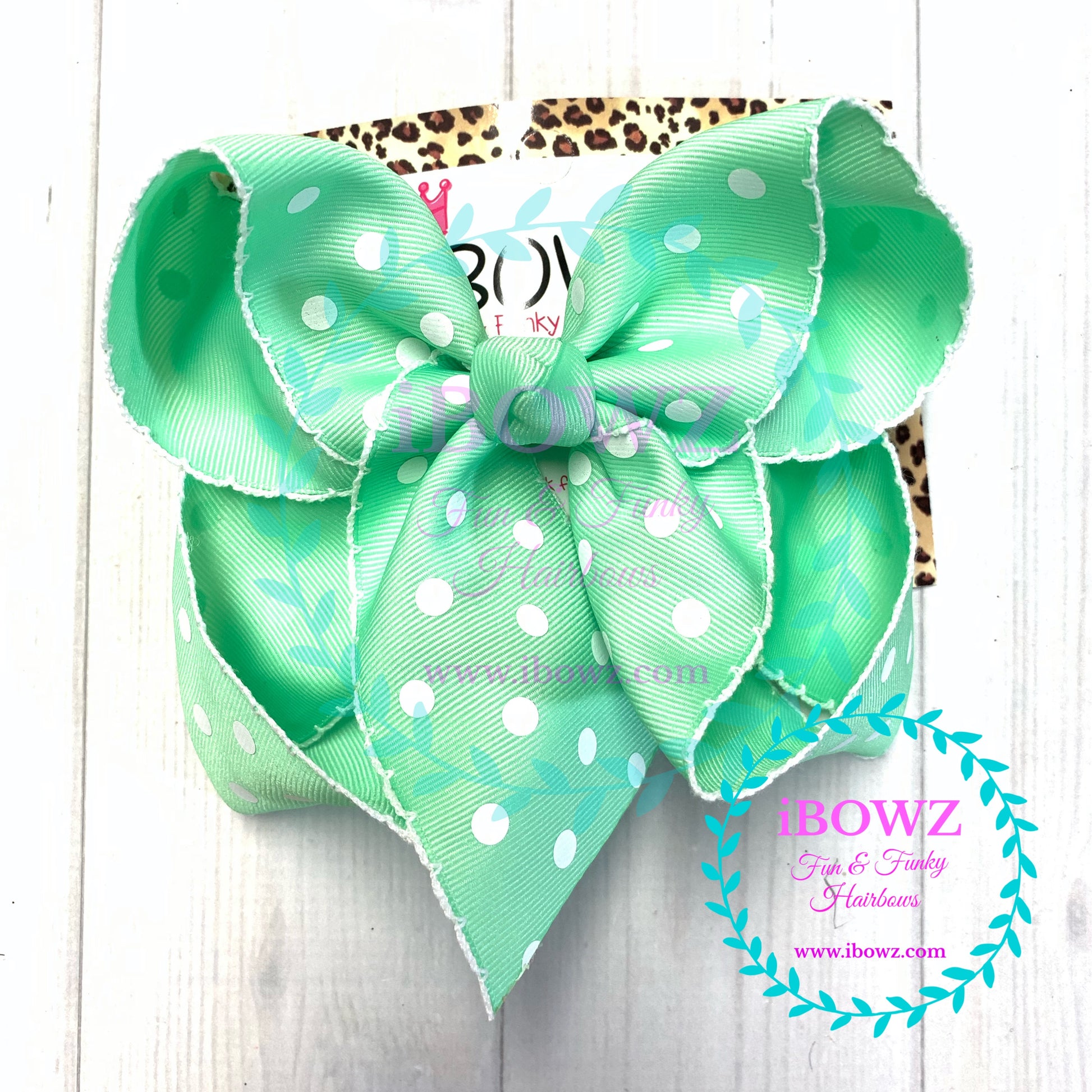 Sparkle Thursday ~ New Mint Green polka dot Moon-Stitch Fun bow ~ iBOWZ Fun & Funky Hairbows