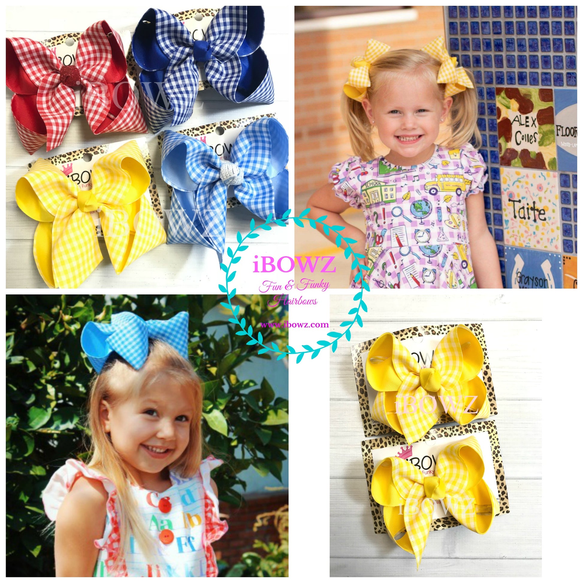 School House Gingham Fun iBOWZ~ Red, Yellow, Blue Gingham Printed Hairbow