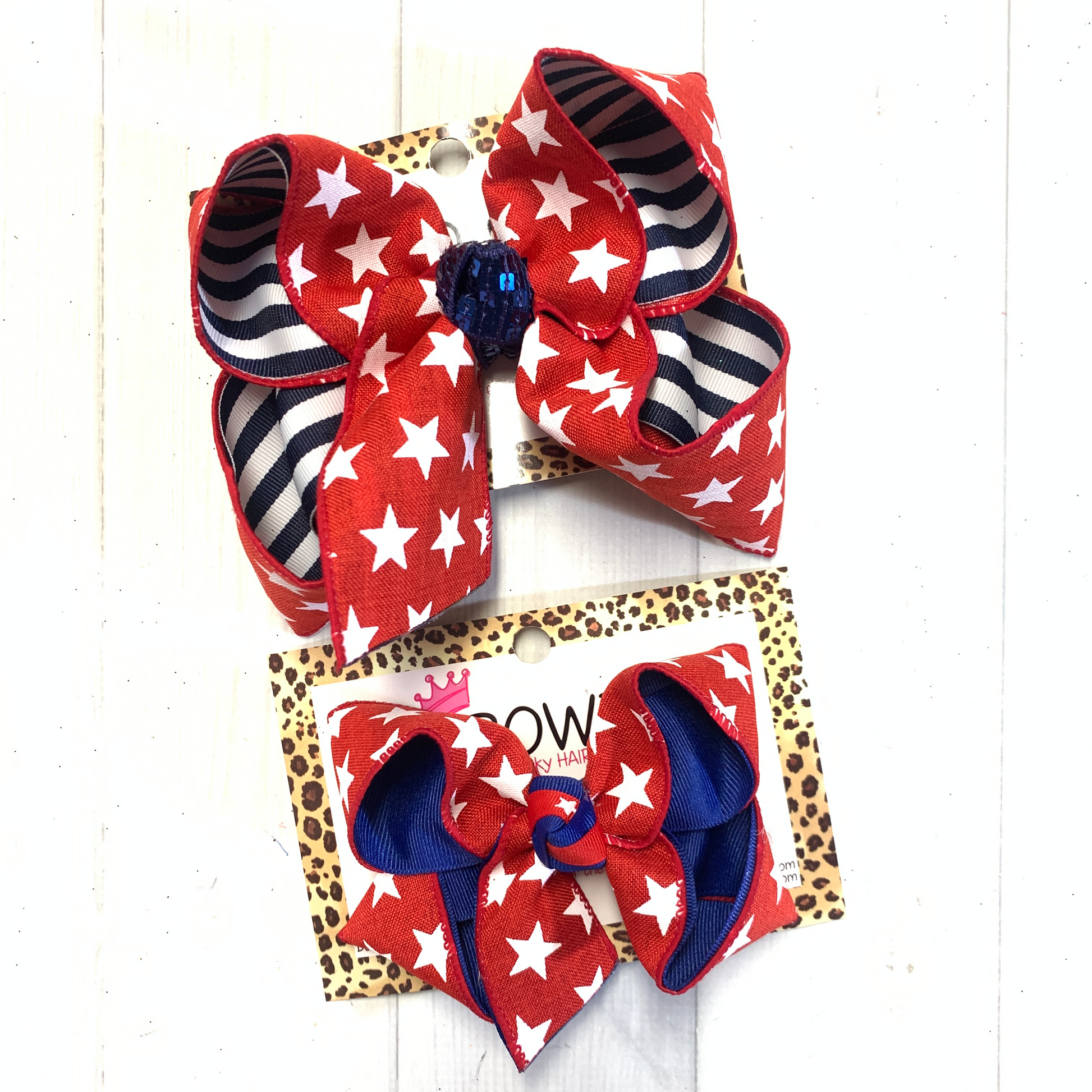 - Red Stars layered on Navy blue Stripes (available in all bow sizes)