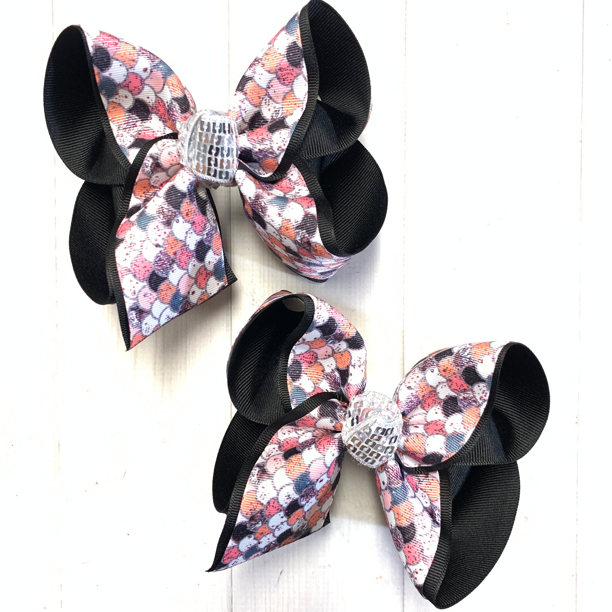 Scalloped Edge Ribbon Bow Bundle | Orange, Black and Dark Orchid hairbows