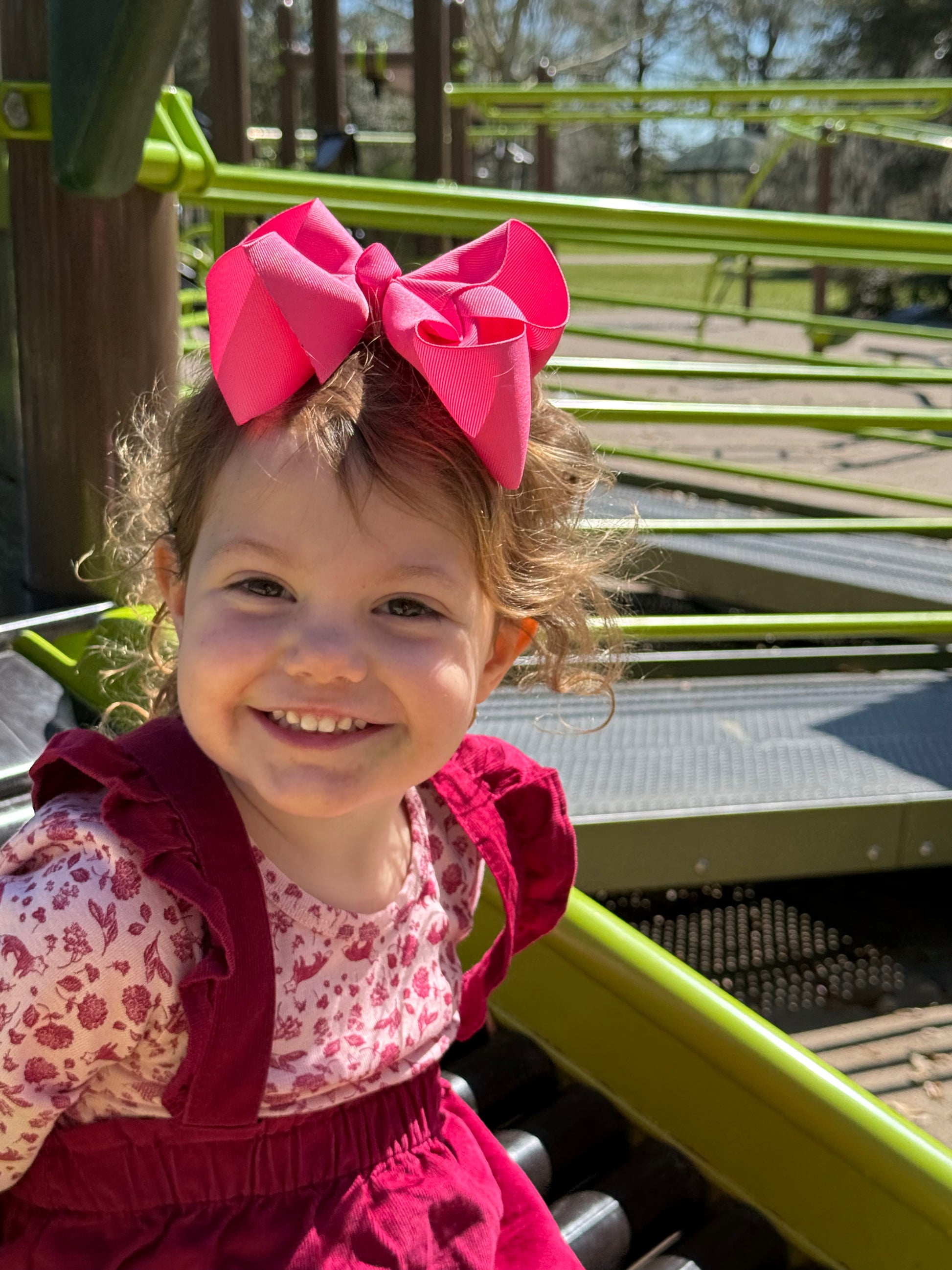 Toddler 3" & Medium 4" bows have an alligator clip (no teeth) You can attach these to a headband if she has no hair ( Perfect Size for ages Newborn to 3 years old, Depending on how much hair she has)