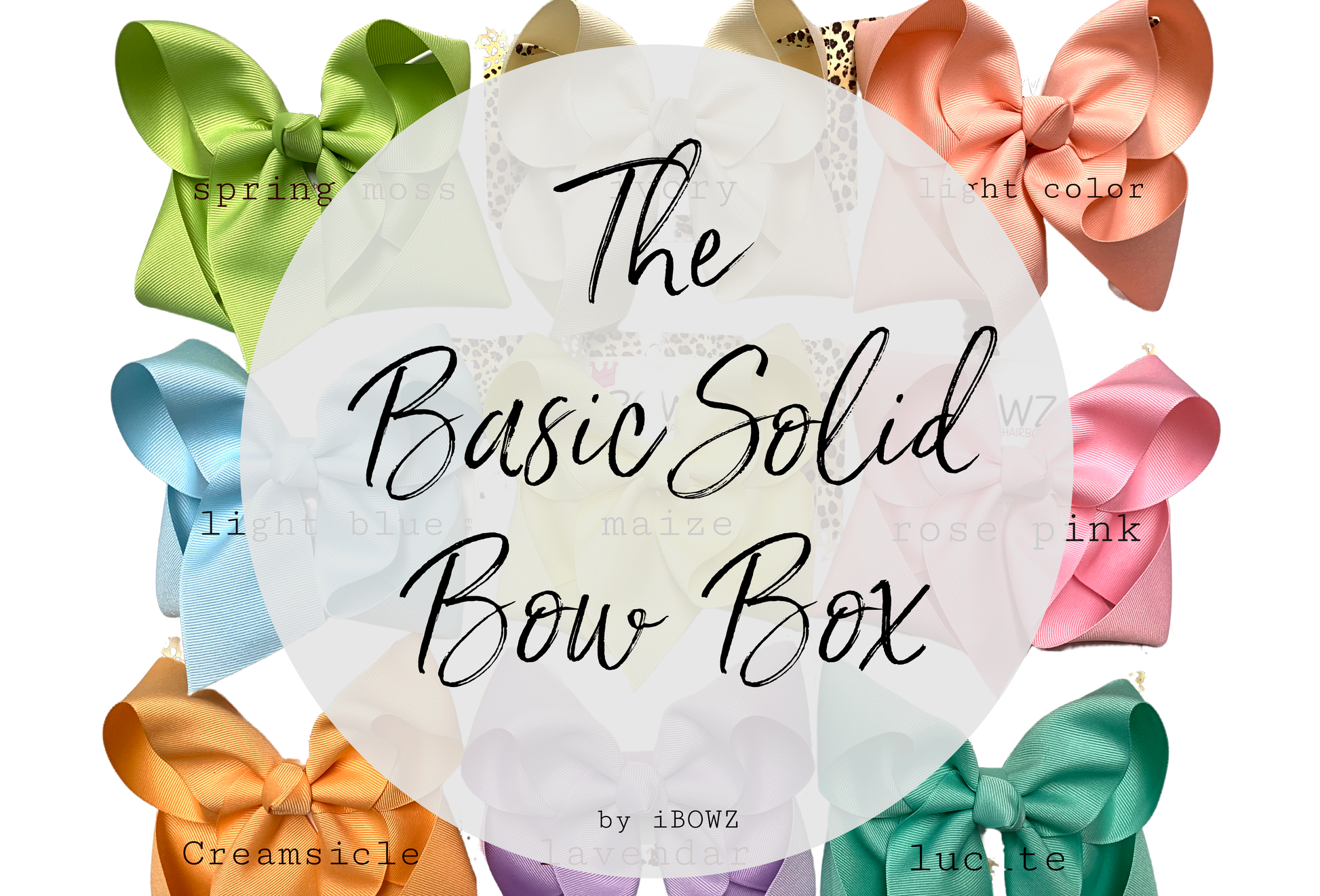 The Basic Solid Bow Box is 8 Solid Bows Carefully, Crafted to Create the Perfect Colors that you will need in the Next Month to Match all your Girls Outfits.