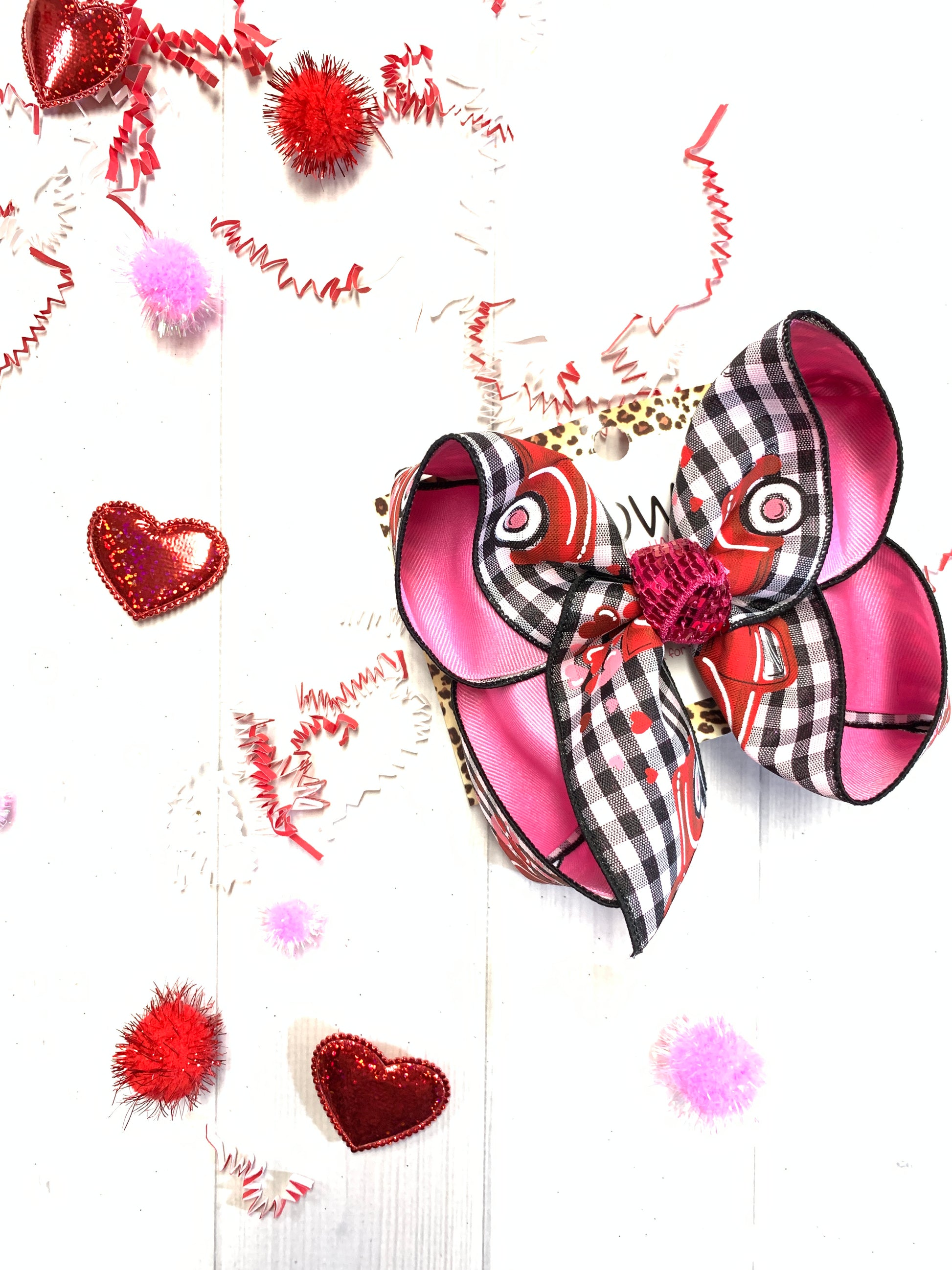 Valentines Day Fun Bow ~ Vintage Red Truck & Black & White Plaid Hairbow by iBOWZ