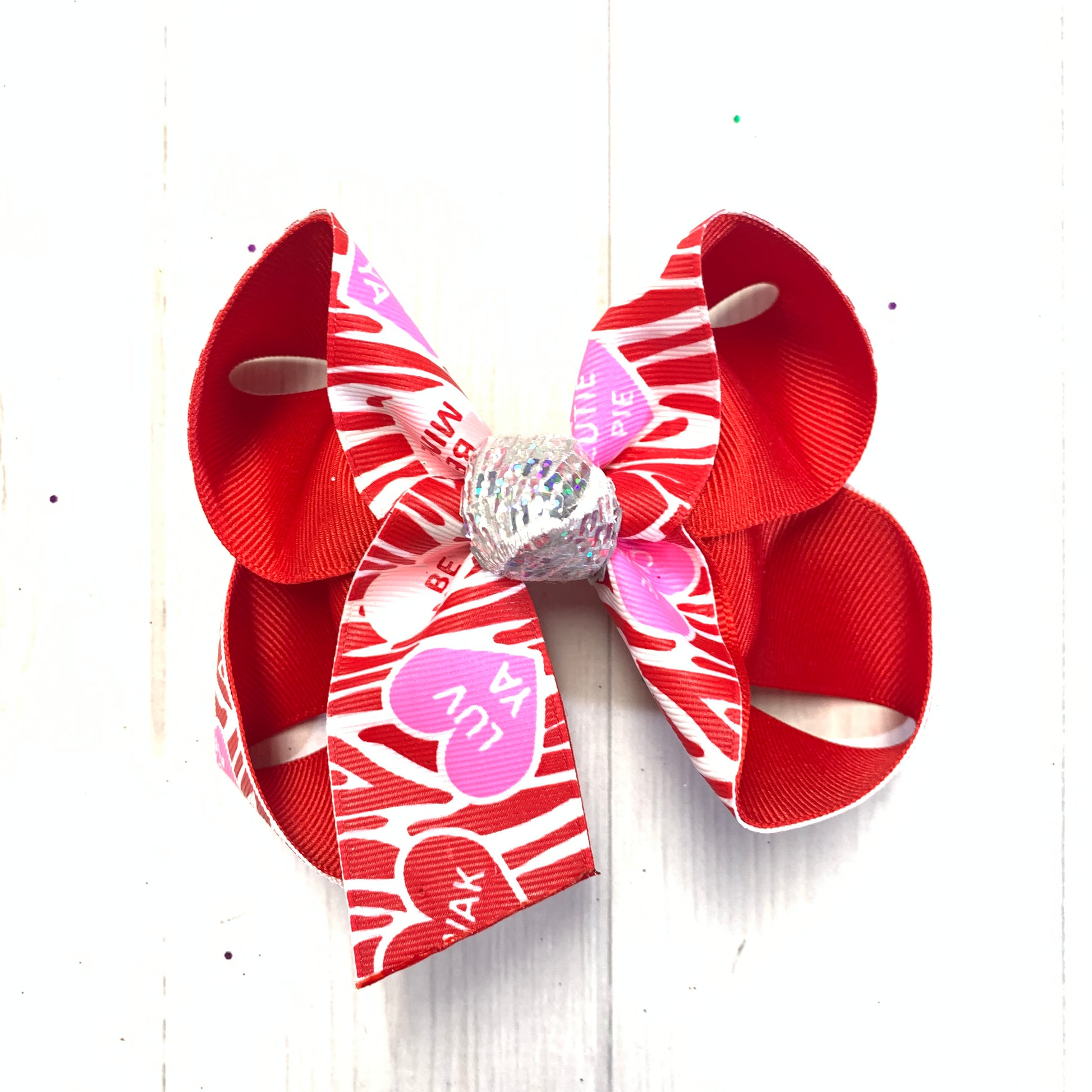 Valentines Day Fun Printed bows ~ Hairbows by iBOWZ- Limited Time- Red Conversation hearts