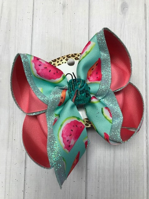 Watercolor Watermelons ~ Summer and Fall Fun Hairbows ~ Mint glitter | Watermelon